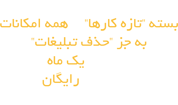 توجه: با اولین ثبت نام، بسته "تازه کارها" و همه امکانات به جز "حذف تبلیغات" به مدت یک ماه به صورت رایگان برایتان فعال می شود!